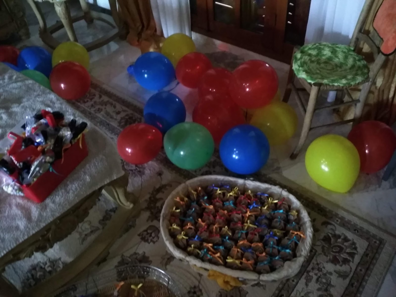 Κι εδώ τα μπαλόνια, φουσκωμένα από την προηγούμενη το βράδυ! Εσείς μην τα φουσκώσετε πολύ, γιατί είναι πολύ πιθανό να καταλήξετε με τα μισά από αυτά!